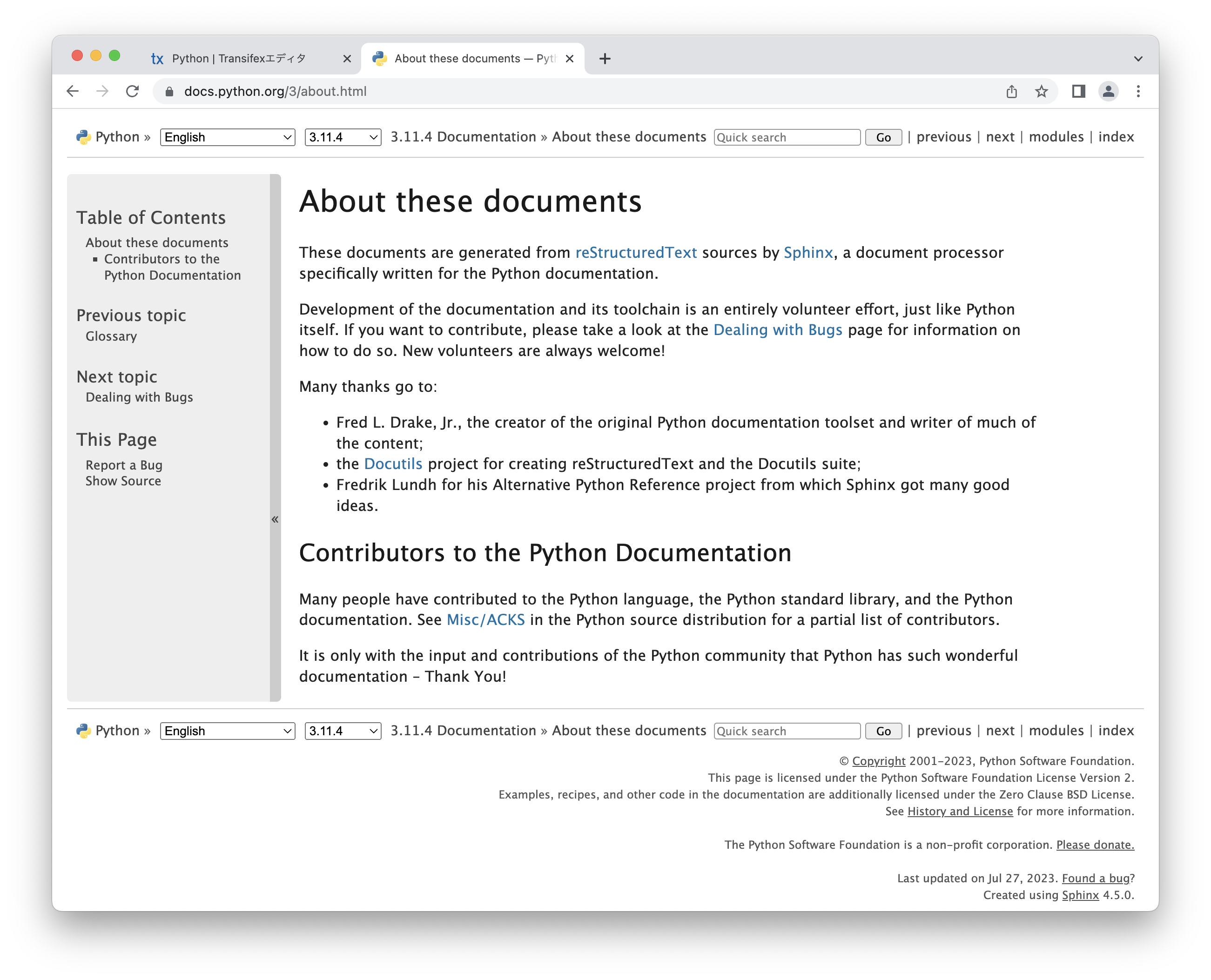 ここでは少し視点を変えて、Python公式ドキュメントがどういった仕組みで多言語のサイトとして公開されているかを説明します。