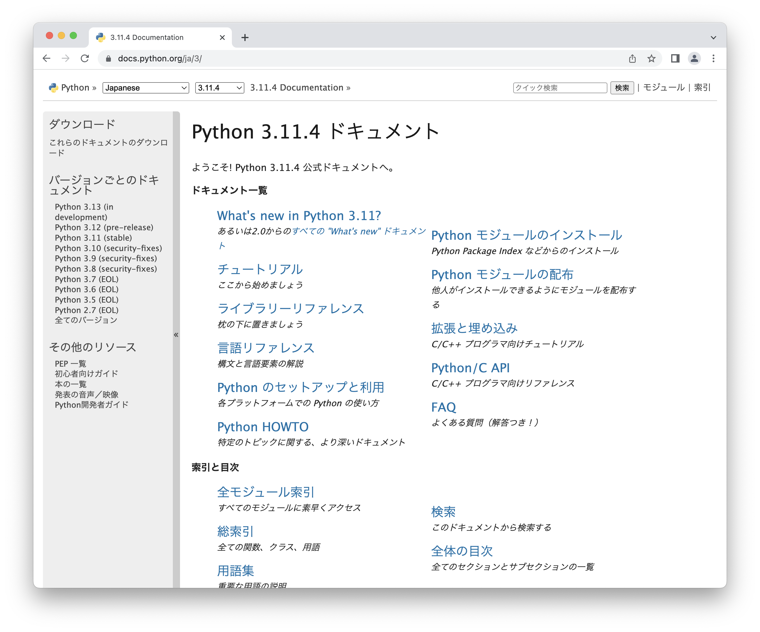 リソース名(c-api--abstract等)が公式ドキュメントのURL(c-api/abstract.html等)と似ていることがわかります。